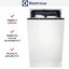 Встраиваемая модель Электролюкс отлично впишется в любой интерьер, главное — правильно выбрать место, чтобы подвести коммуникации. Устанавливается в нишу целиком, полностью закрывается декоративной панелью. Обратите внимание: в комплекте не идет фасад, его необходимо установить самостоятельно. Имеет уменьшенную ширину — благодаря этому поместится даже на очень маленькой кухне. В камеру можно загрузить ограниченное число комплектов: 10 шт. Комплектом считается набор посуды на одного человека, который нужен для полноценного приема пищи: глубокая и плоская тарелки, тарелка для салата, блюдце под чашку, сама чашка, ложка и вилка.