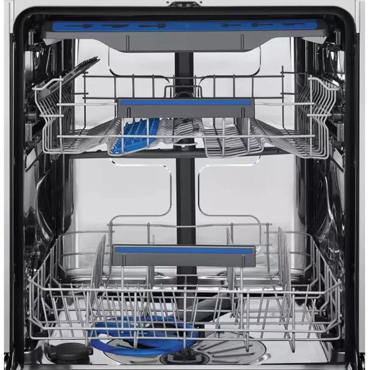Встраиваемая посудомоечная машина Electrolux EES48401L — это современное решение для кухни, сочетающее в себе функциональность, эстетику и передовые технологии. Агрегат полностью встраивается в мебельный гарнитур, обеспечивая гармоничный внешний вид благодаря возможности установки под фасад вашей кухни. Устройство относится к полноразмерному типу и вмещает до 14 комплектов посуды, что делает его идеальным выбором для семьи или приёма гостей. Габариты корпуса составляют 81,8–87,8 см в высоту, 59,6 см в ширину и 55 см в глубину, а рекомендуемые параметры ниши — 82–88 × 60 × 55 см, что гарантирует точную и надёжную интеграцию в интерьер.