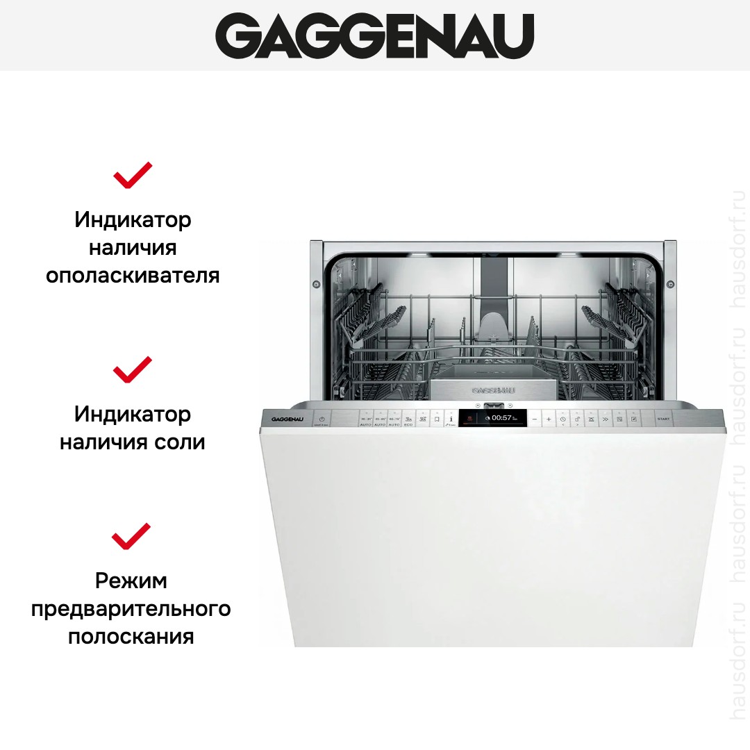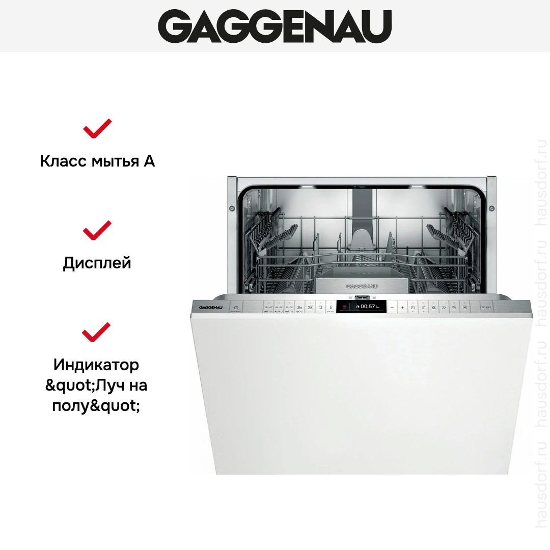 Встраиваемая посудомоечная машина Gaggenau DF271101F — полностью интегрируемая модель. Она сочетает сдержанный внешний вид и продуманную внутреннюю организацию: высота 87 см, ширина 60 см и глубина 55 см позволяют разместить устройство в стандартной нише 86.5—92.5×60×55 см. Фронт закрывается вашим фасадом, а панель управления выполнена в серебристом тоне и скрыта за дверцей для аккуратного облика. Внутренняя камера из нержавеющей стали рассчитана на 12 комплектов. Оснащена регулируемой по высоте верхней корзиной с системой Rackmatic‑3 и специальной полкой для столовых приборов, дополненной корзиной и держателем для высоких бокалов.