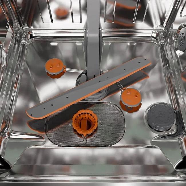 Система ополаскивания и автоматической промывки фильтров, которая предотвращает засоры. Благодаря этому засохшие загрязнения или не убранные перед мойкой кусочки пищи не забивают слив.