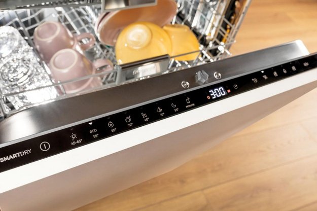 Управление посудомоечной машиной позволяет выбирать температуру мытья, длительность цикла, а также дополнительные опции. Панель управления может располагаться на фасаде прибора, если ПММ отдельностоящая или настольная, или на торце дверцы у встраиваемых моделей.