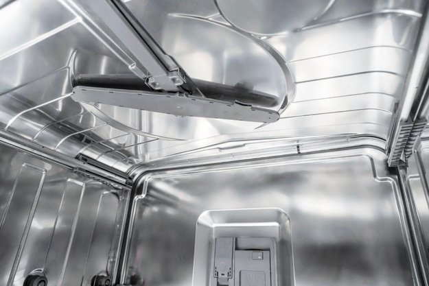 Как известно, принцип работы посудомоечной машины состоит в том, что на посуду в корзинах воздействуют сильные струи воды, которые подаются сквозь специальные форсунки во вращающихся разбрызгивателях-коромыслах. Класс мытья определяется, исходя из количества разбрызгивателей и форсунок, а также их диаметра — чем больше отверстий и чем меньше их диаметр, тем выше класс. Имеет значение также и расположение отверстий, так как струи воды не должны пересекаться — это мешает точности попадания в нужные места, а значит, и эффективности мытья. Кроме того, в камере не должно оставаться «слепых» зон, куда вода попадать не будет.