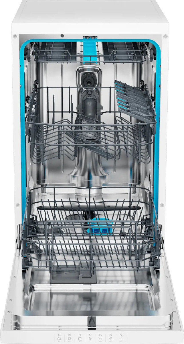 Управление посудомоечной машиной позволяет выбирать температуру мытья, длительность цикла, а также дополнительные опции. Панель управления может располагаться на фасаде прибора, если ПММ отдельностоящая или настольная, или на торце дверцы у встраиваемых моделей.