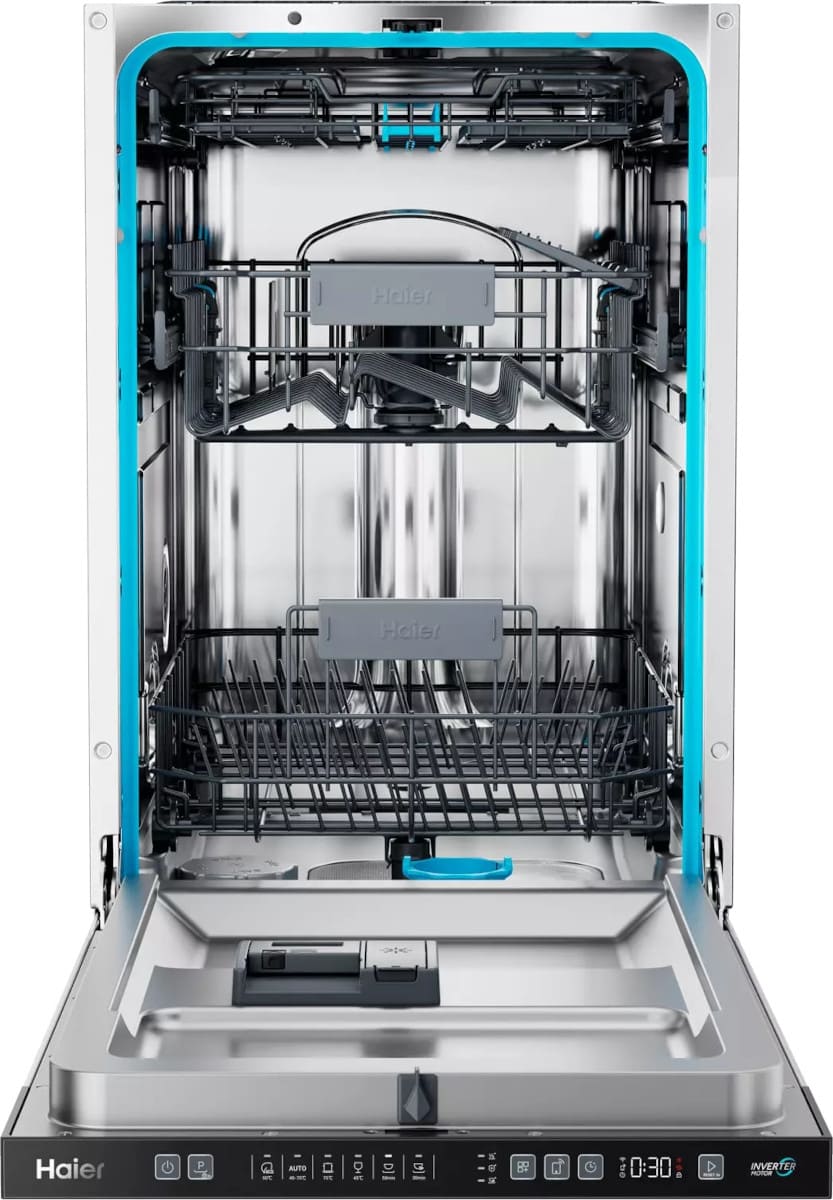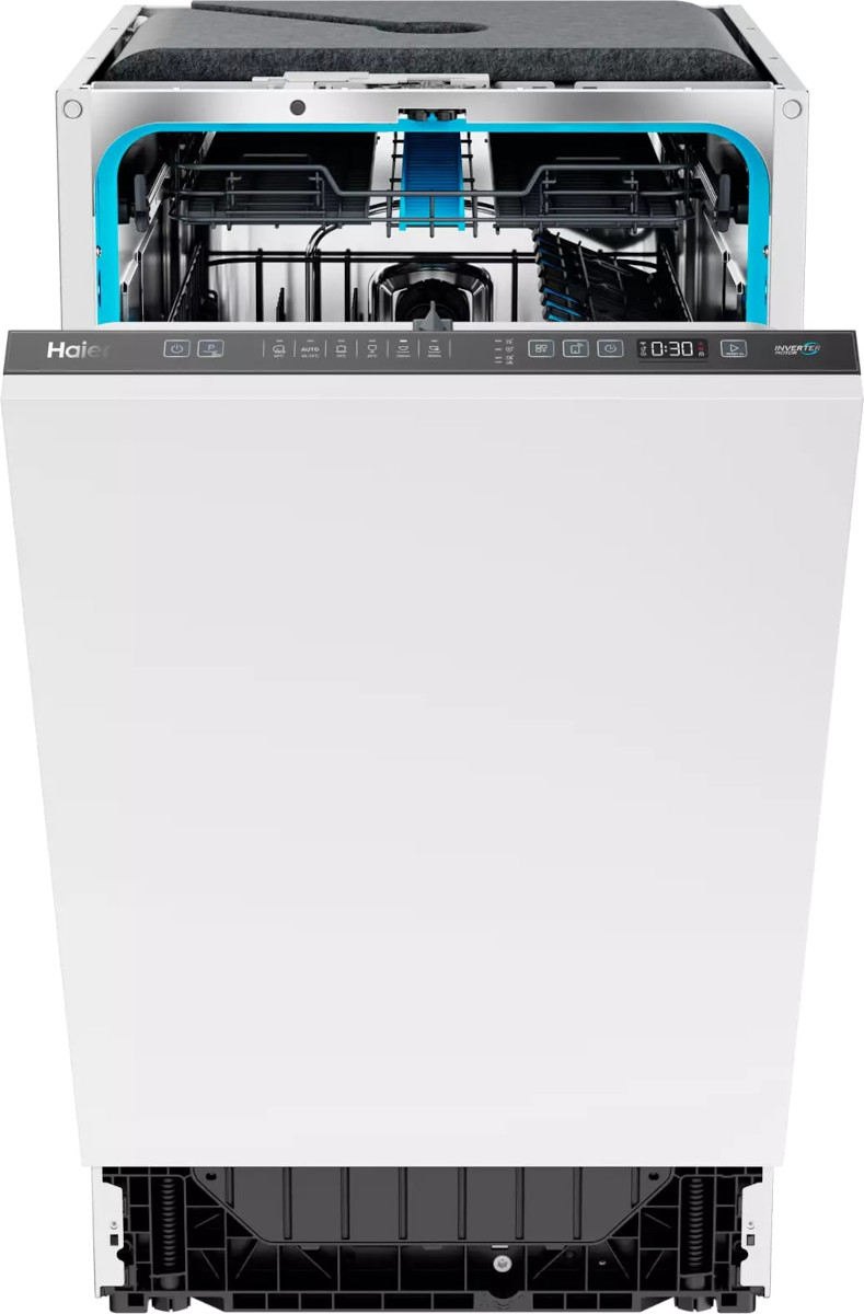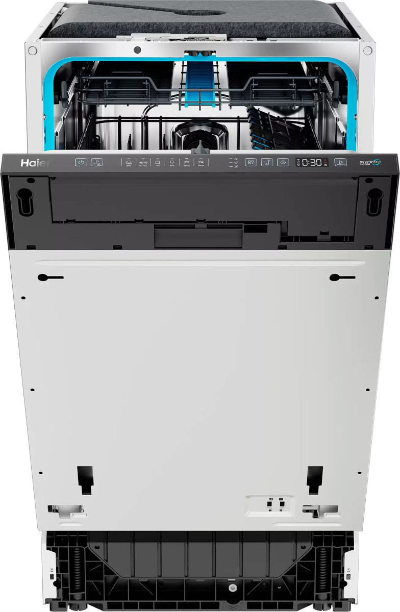 Встраиваемая посудомоечная машина Haier HDWE11-595RU. Эта узкая полностью встраиваемая модель создана для тех, кто ценит аккуратный встроенный интерьер и функциональность. Фасад под ваш навес позволяет гарнитуру выглядеть единым целым, а закрытая панель управления с черной вставкой сохраняет эстетичный вид кухни. LED-дисплей и индикаторы аккуратно спрятаны, но легко читаемы при открытии дверцы или по «лучу на полу».