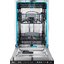 Компактные габариты 81.6—87.6×44.8×57.5 см и ниша 81.8—87.8×45.2×57.7 см подходят для стандартного кухонного шкафа шириной 45 см. Внутренняя камера из нержавеющей стали устойчива к коррозии и дольше сохраняет тепло, что улучшает сушку и экономию энергии. Встроенная подсветка облегчает загрузку и контроль за посудой в темное время.