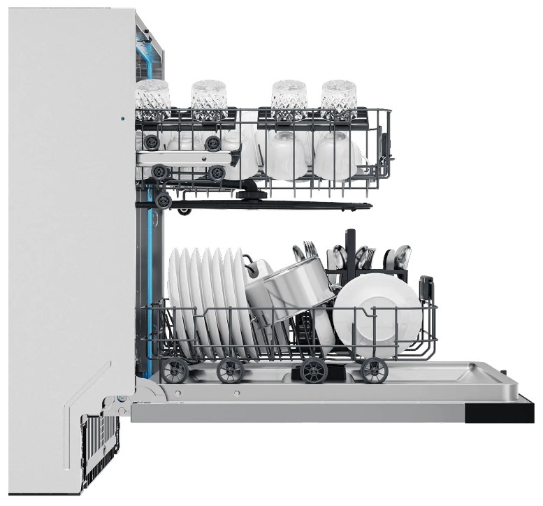 Полноразмерные модели выбирают в больших семьях, а также те, кто много готовит или часто принимает гостей. Их вместимость может составить до 15 комплектов посуды, а габаритные размеры соответствуют размерам стандартной кухонной мебели шириной и глубиной 60 см и высотой 82-85 см. Они выпускаются как во встраиваемом, так и в отдельностоящем варианте: во втором случае для установки понадобится достаточно много места. Как правило, полноразмерные приборы отличаются большим набором стандартных и специальных программ мойки, а также дополнительных опций: в частности, они оснащаются третьей корзиной для мытья столовых приборов.