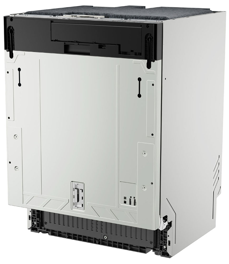 Встраиваемая модель Хайер отлично впишется в любой интерьер, главное — правильно выбрать место, чтобы подвести коммуникации. Устанавливается в нишу целиком, полностью закрывается декоративной панелью. Обратите внимание: в комплекте не идет фасад, его необходимо установить самостоятельно. Имеет стандартные размеры, поэтому может не поместиться на очень маленькой кухне. В камеру можно загрузить ограниченное число комплектов: 16 шт. Комплектом считается набор посуды на одного человека, который нужен для полноценного приема пищи: глубокая и плоская тарелки, тарелка для салата, блюдце под чашку, сама чашка, ложка и вилка.
