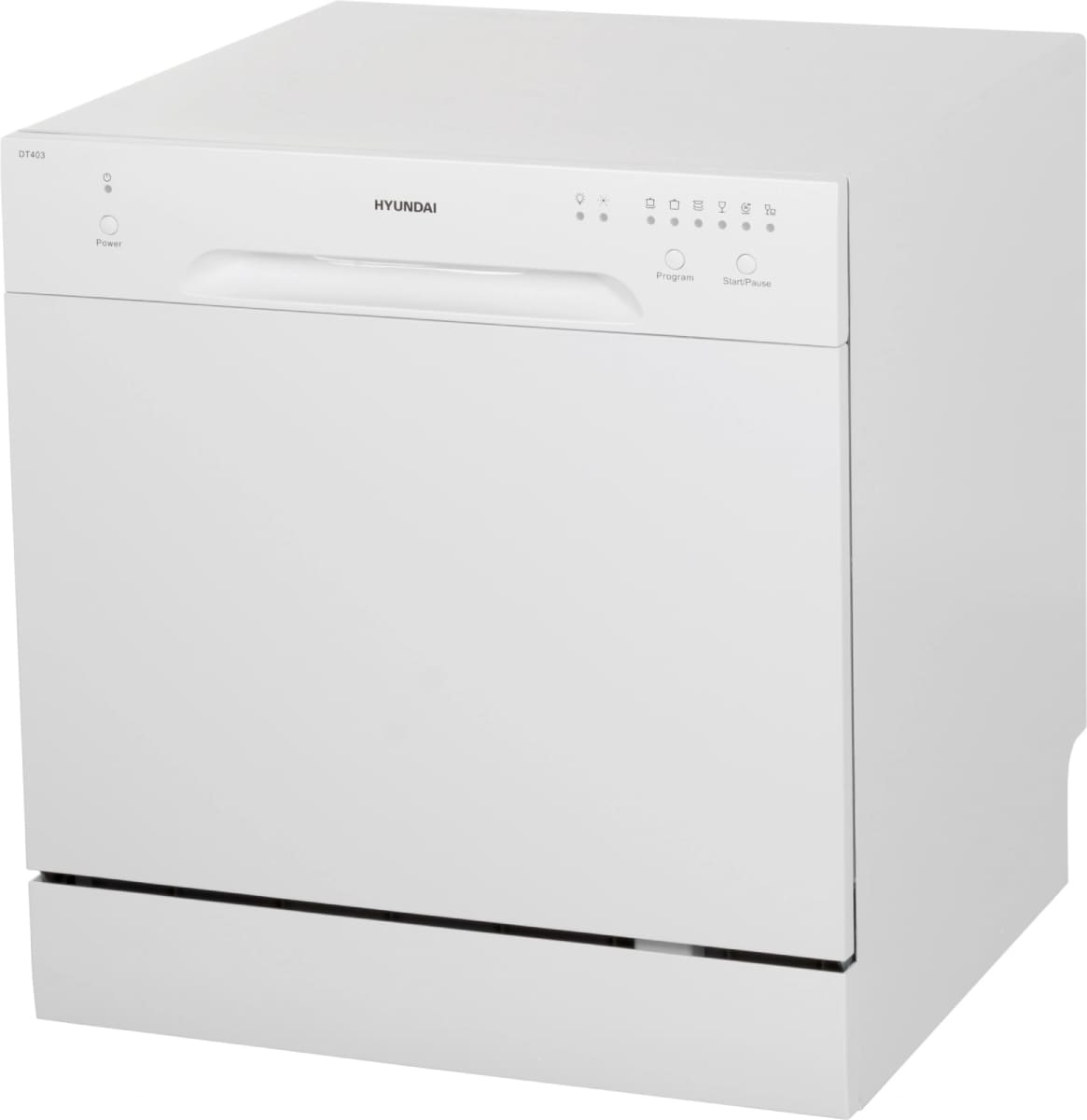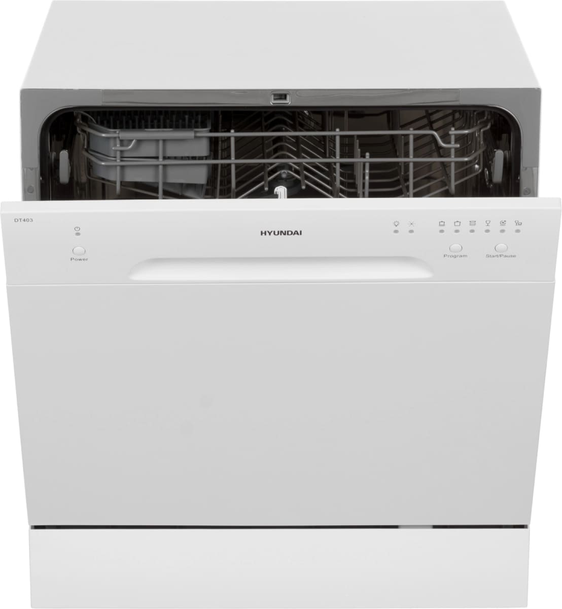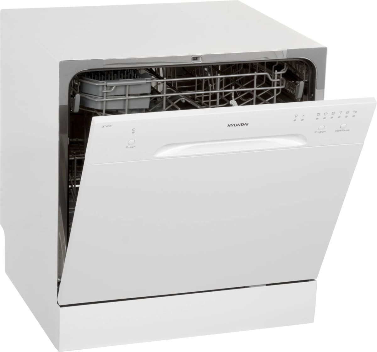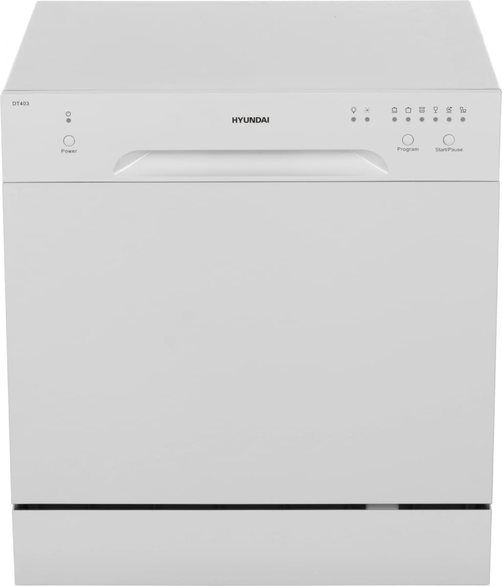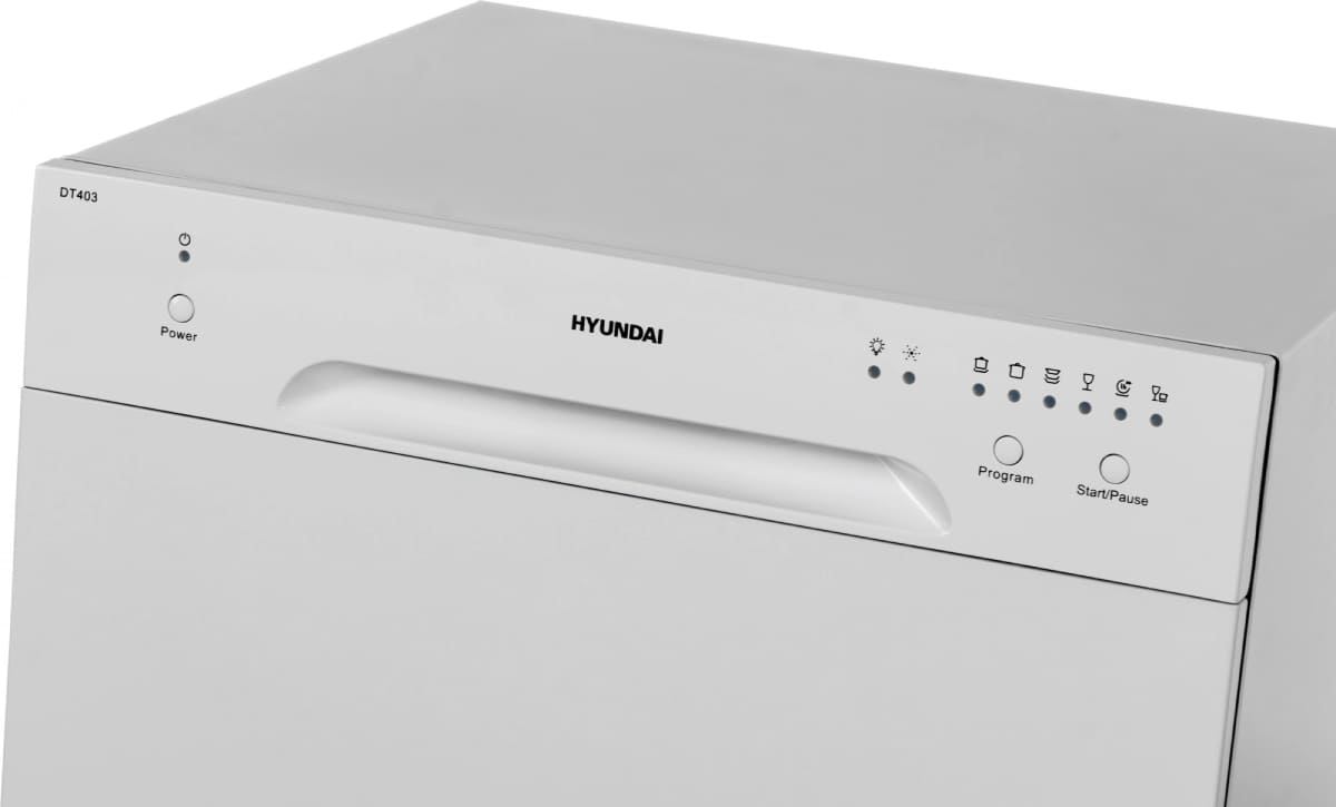 Отдельностоящая модель Хендай отлично впишется в кухонный интерьер, главное — правильно выбрать место, чтобы подвести коммуникации. Компактные размеры позволяют разместить ее даже на очень маленькой кухне. В камеру можно загрузить ограниченное число комплектов: 8 шт. Комплектом считается набор посуды на одного человека, который нужен для полноценного приема пищи: глубокая и плоская тарелки, тарелка для салата, блюдце под чашку, сама чашка, ложка и вилка.