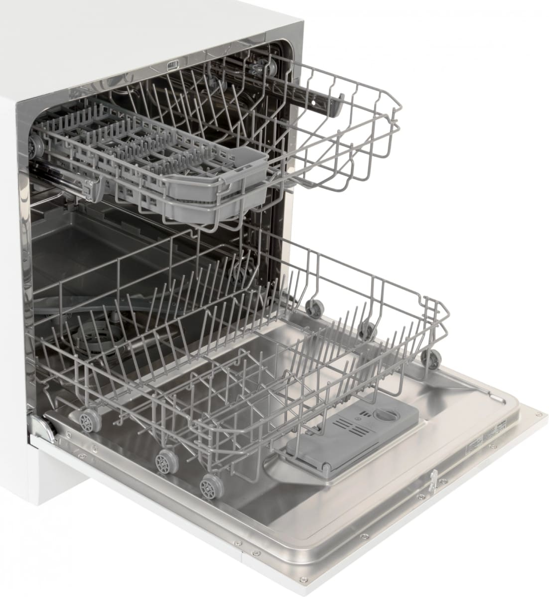 Полноразмерные модели выбирают в больших семьях, а также те, кто много готовит или часто принимает гостей. Их вместимость может составить до 15 комплектов посуды, а габаритные размеры соответствуют размерам стандартной кухонной мебели шириной и глубиной 60 см и высотой 82-85 см. Они выпускаются как во встраиваемом, так и в отдельностоящем варианте: во втором случае для установки понадобится достаточно много места. Как правило, полноразмерные приборы отличаются большим набором стандартных и специальных программ мойки, а также дополнительных опций: в частности, они оснащаются третьей корзиной для мытья столовых приборов.