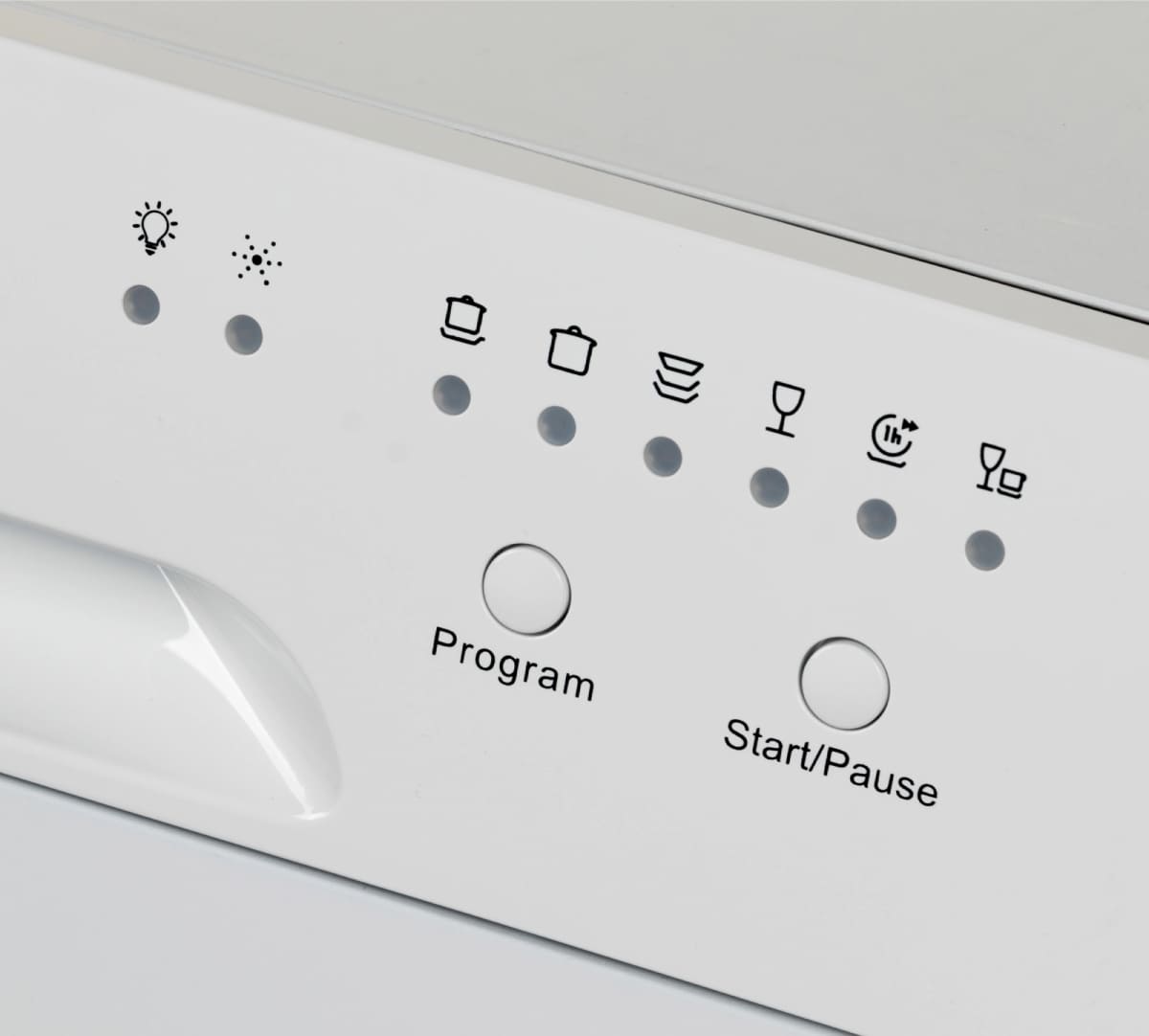 Цвет панели управления посудомоечной машины во многом зависит от типа устройства и расположения управляющих элементов. В большинстве современных посудомоек используется кнопочное либо сенсорное управление. В отдельностоящих и настольных моделях панель управления может быть открытой и располагаться на фронтальной части прибора, что облегчает установку параметров работы и контроль за выполнением программы. Во встраиваемых моделях с возможностью навески декоративного мебельного фасада панель управления чаще всего размещается на верхней кромке дверцы.