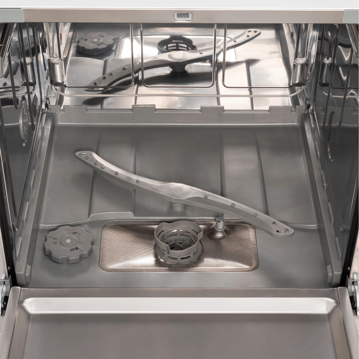 Как известно, принцип работы посудомоечной машины состоит в том, что на посуду в корзинах воздействуют сильные струи воды, которые подаются сквозь специальные форсунки во вращающихся разбрызгивателях-коромыслах. Класс мытья определяется, исходя из количества разбрызгивателей и форсунок, а также их диаметра — чем больше отверстий и чем меньше их диаметр, тем выше класс. Имеет значение также и расположение отверстий, так как струи воды не должны пересекаться — это мешает точности попадания в нужные места, а значит, и эффективности мытья. Кроме того, в камере не должно оставаться «слепых» зон, куда вода попадать не будет.