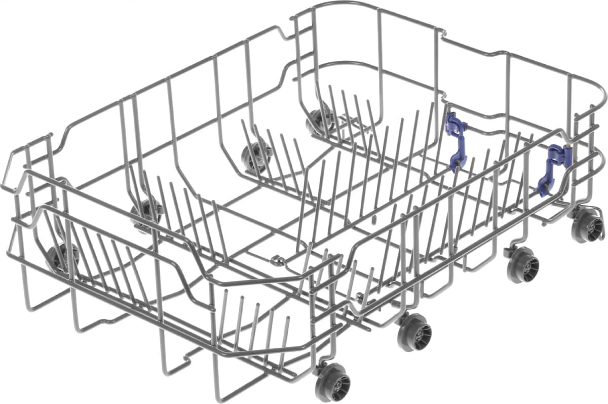 Верхняя корзина может регулироваться по высоте, так что при необходимости в нее можно поместить тарелки большего размера. Нижняя корзина позволяет установить вертикально большие суповые тарелки и блюда большого диаметра — для этого верхнюю корзину можно поднять выше. Тарелки обычно устанавливаются в откидные рамки-держатели, которые легко складываются на дно корзины. Всю посуду в нижней корзине рекомендуется устанавливать без соприкосновения предметов друг с другом, углублением к центру для более интенсивного воздействия струй воды на внутреннюю часть посуды.