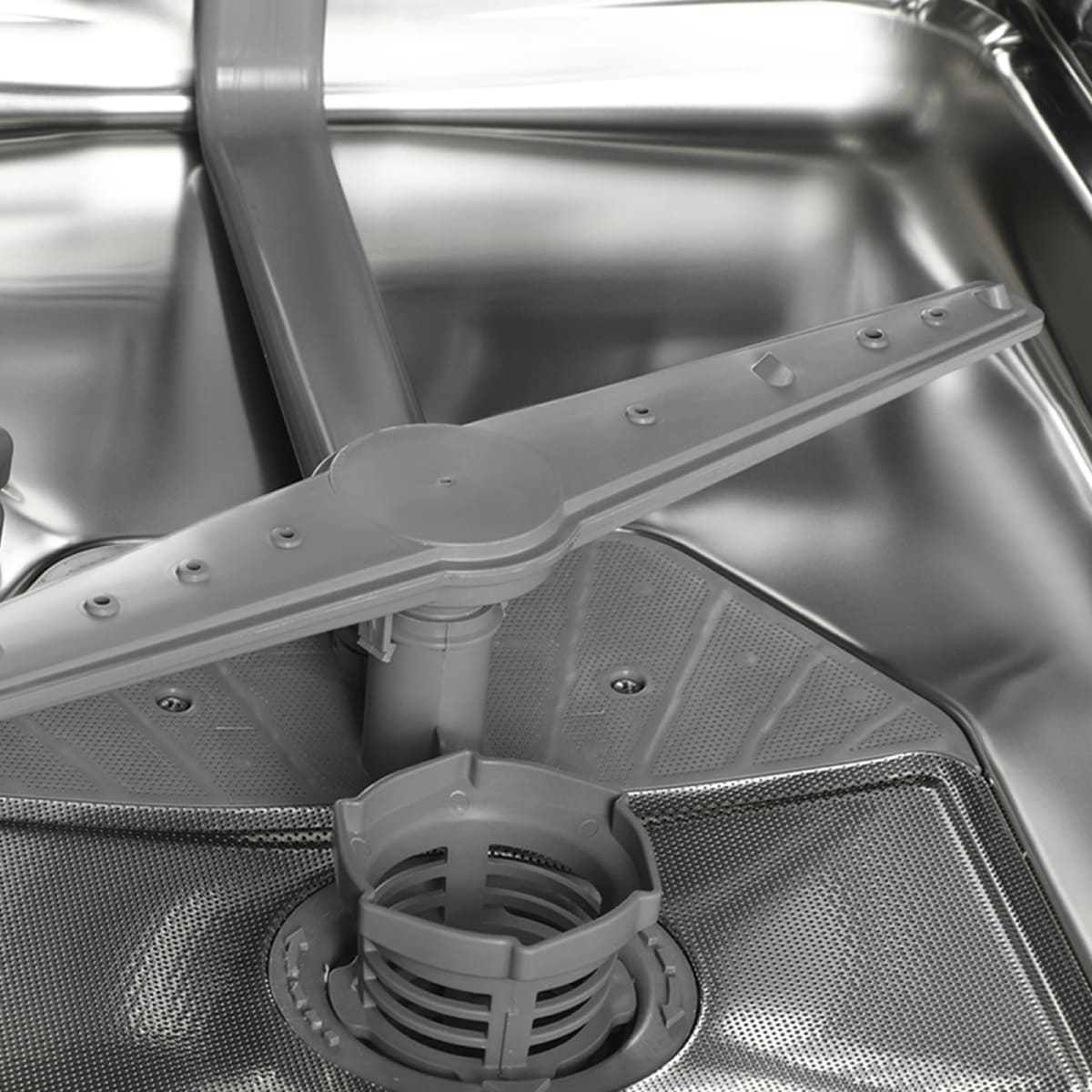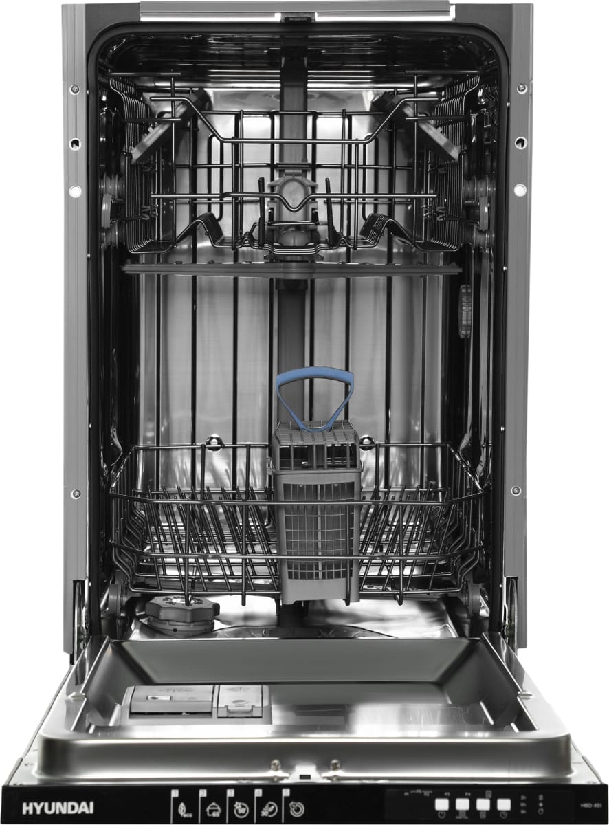 Встраиваемая модель Хендай отлично впишется в любой интерьер, главное — правильно выбрать место, чтобы подвести коммуникации. Устанавливается в нишу целиком, полностью закрывается декоративной панелью. Обратите внимание: в комплекте не идет фасад, его необходимо установить самостоятельно. Имеет уменьшенную ширину — благодаря этому поместится даже на очень маленькой кухне. В камеру можно загрузить ограниченное число комплектов: 10 шт. Комплектом считается набор посуды на одного человека, который нужен для полноценного приема пищи: глубокая и плоская тарелки, тарелка для салата, блюдце под чашку, сама чашка, ложка и вилка.