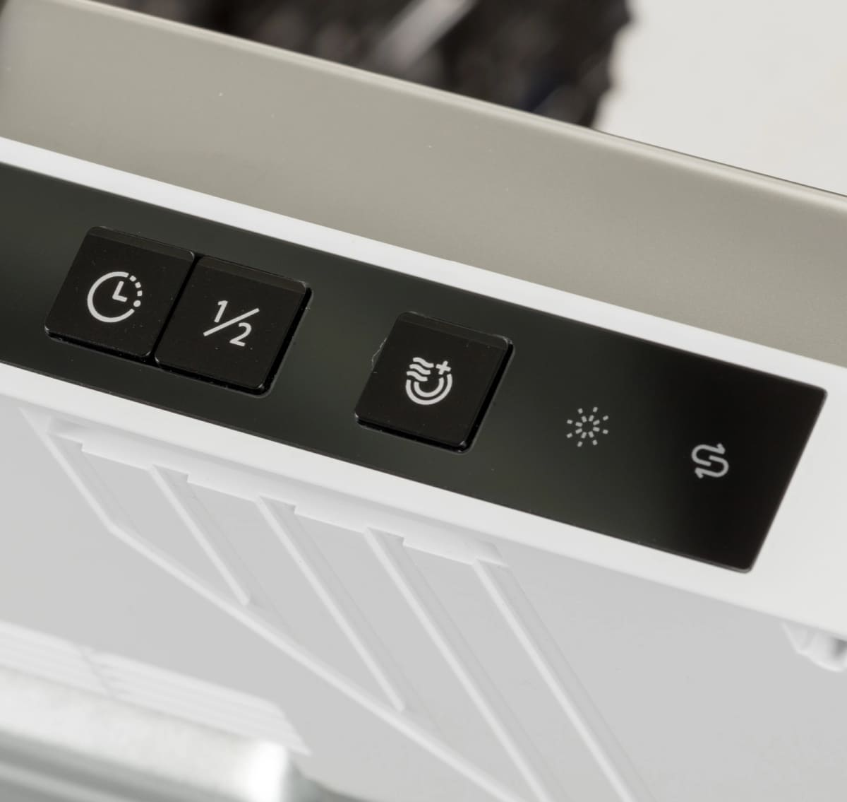 Кнопки на панели управления посудомоечных машин позволяют быстро выбирать одну из стандартных программ мытья, задавать дополнительные опции. Расположение панели управления обычно определяется типом посудомоечной машины. У встраиваемых моделей кнопки, дисплей и индикаторы располагаются на торце дверцы, поскольку в передней части навешивается декоративный мебельный фасад. Отдельностоящие машины могут оснащаться панелью управления, расположенной расположена на фасадной части.