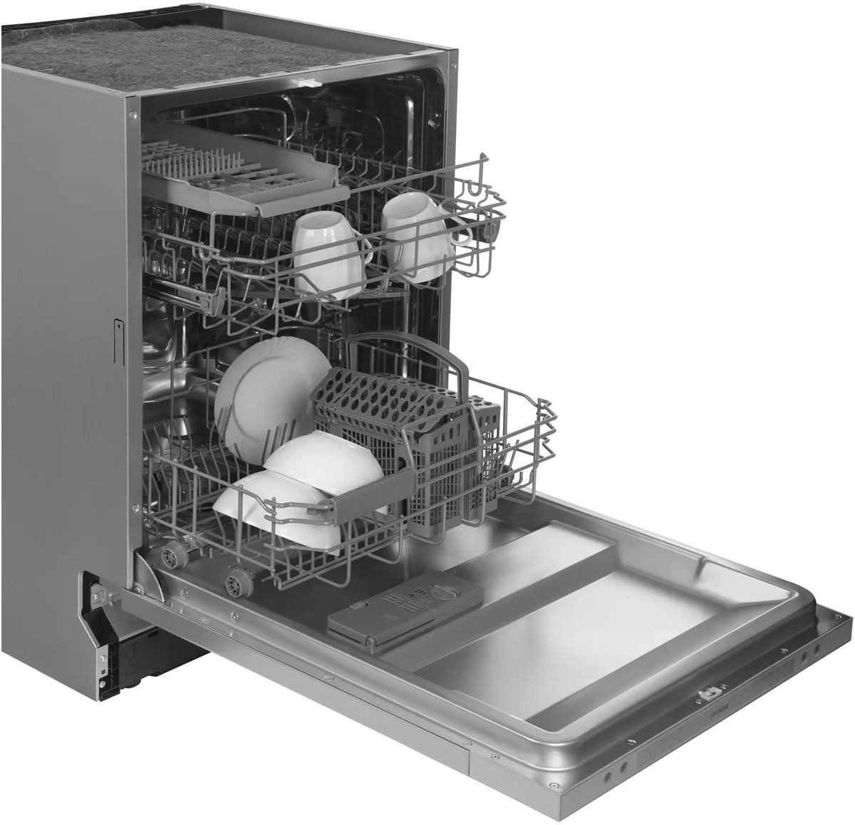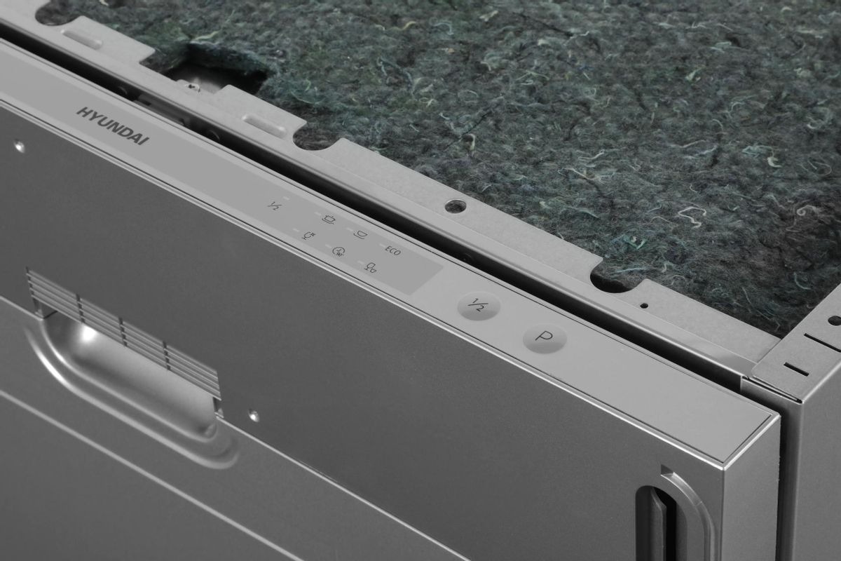 Встраиваемая модель Хендай отлично впишется в любой интерьер, главное — правильно выбрать место, чтобы подвести коммуникации. Устанавливается в нишу целиком, полностью закрывается декоративной панелью. Обратите внимание: в комплекте не идет фасад, его необходимо установить самостоятельно. Имеет стандартные размеры, поэтому может не поместиться на очень маленькой кухне. В камеру можно загрузить ограниченное число комплектов: 14 шт. Комплектом считается набор посуды на одного человека, который нужен для полноценного приема пищи: глубокая и плоская тарелки, тарелка для салата, блюдце под чашку, сама чашка, ложка и вилка.