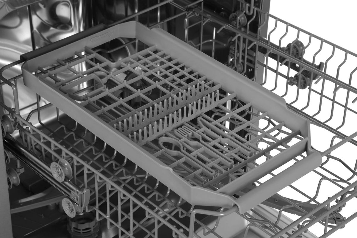 Корзина для столовых приборов — один из обязательных аксессуаров, которыми оснащается любая посудомоечная машина. Она представляет собой сетчатый пластиковый органайзер, в котором устанавливаются в вертикальном положении ложки, ножи и вилки. Корзина, как правило, разделяется на отдельные отсеки, в каждый из которых можно поместить один или несколько предметов. Зачастую сверху она закрывается специальной крышкой, которая также служит для разделения приборов, способствуя более тщательному их мытью.