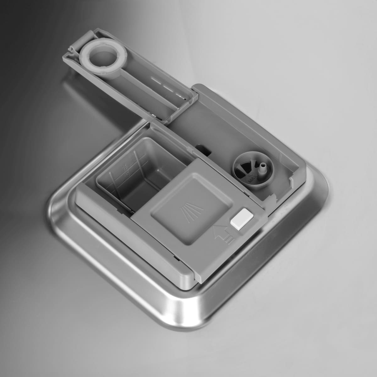 Для высококачественного мытья требуются три компонента. Порошок служит для удаления загрязнений, оставшихся на посуде. Соль нейтрализует примеси, содержащиеся в водопроводной воде, и позволяет избавиться от накипи и известковых отложений на посуде и внутренней поверхности камеры. И, наконец, ополаскиватель позволяет уменьшить поверхностное натяжение воды при помощи специальных составляющих — тензидов, которые облегчают скатывание капель воды. Он способствует удалению остатков порошка и соли, придает посуде ослепительный блеск, и в конечном счете обеспечивает лучшее и быстрое высыхание, а также отсутствие разводов и потеков на ее поверхности.