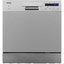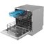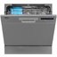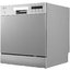 Компактная отдельностоящая посудомоечная машина габаритов 59.5×55×50 см выглядит лаконично и не перегружает пространство. Корпус серебристого цвета и панель управления того же оттенка легко сочетаются с техникой на кухне. При необходимости можно установить прибор под столешницу — предусмотрена такая возможность.