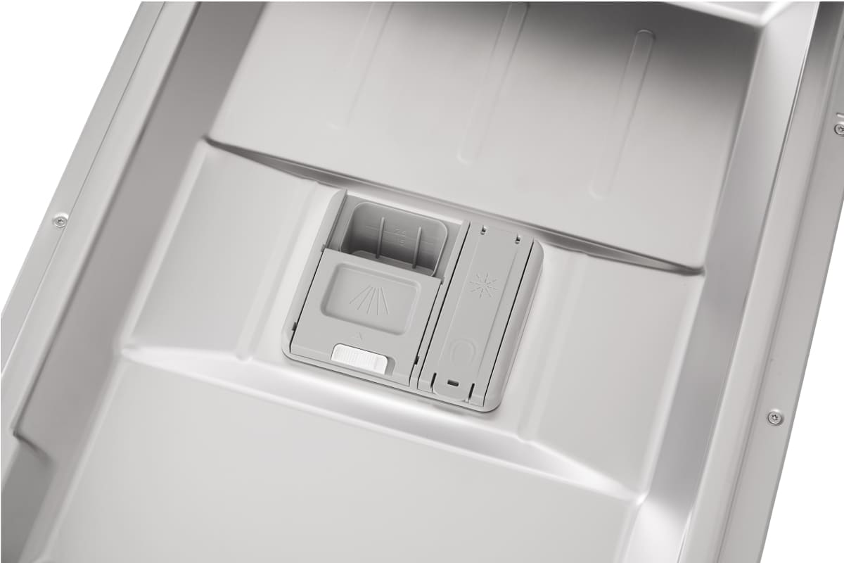 Режим сушки облегчает последующий уход за посудой, предотвращает подтеки на стенках тарелок и бокалов и удаляет значительный процент влаги. Производители внедрили цикл такого типа: активная. Внутренняя подсветка делает работу проще. Внутри расположены разнообразные датчики, сигналы которых выводятся на панель управления, позволяют вам контролировать процесс. Машинка определяет остаток соли и предупреждает о том, что нужно добавить. Отдельный датчик проверяет наличие ополаскивателя.