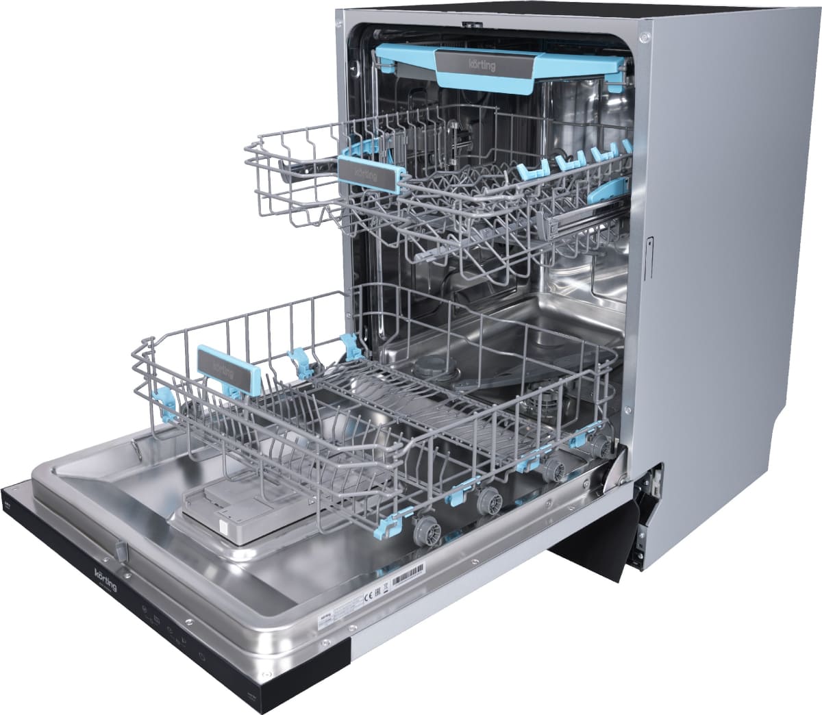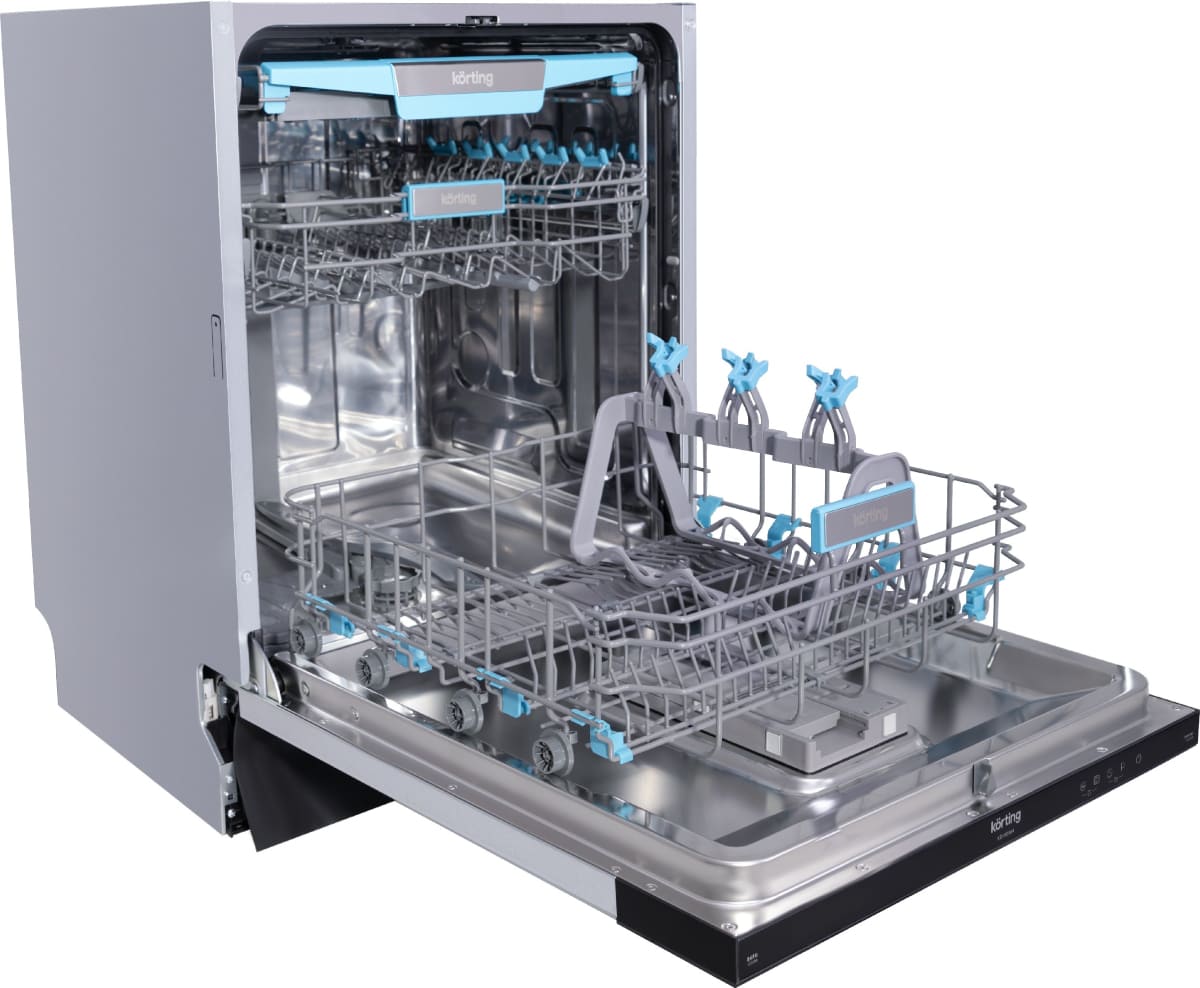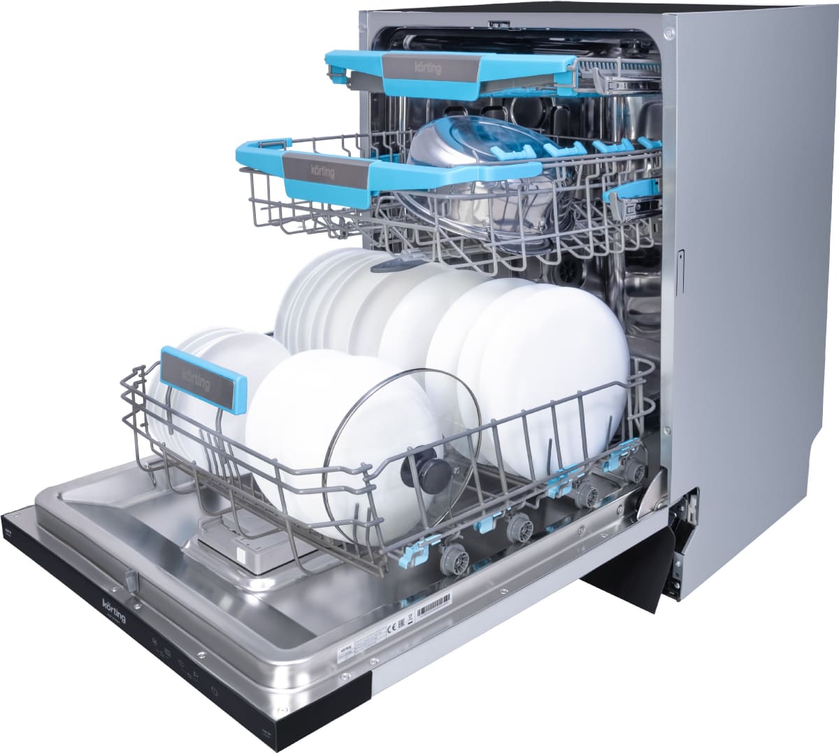 Встраиваемая модель Кертинг отлично впишется в любой интерьер, главное — правильно выбрать место, чтобы подвести коммуникации. Устанавливается в нишу целиком, полностью закрывается декоративной панелью. Обратите внимание: в комплекте не идет фасад, его необходимо установить самостоятельно. Имеет стандартные размеры, поэтому может не поместиться на очень маленькой кухне. В камеру можно загрузить ограниченное число комплектов: 14 шт. Комплектом считается набор посуды на одного человека, который нужен для полноценного приема пищи: глубокая и плоская тарелки, тарелка для салата, блюдце под чашку, сама чашка, ложка и вилка.