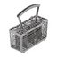 Корзина для столовых приборов — один из обязательных аксессуаров, которыми оснащается любая посудомоечная машина. Она представляет собой сетчатый пластиковый органайзер, в котором устанавливаются в вертикальном положении ложки, ножи и вилки. Корзина, как правило, разделяется на отдельные отсеки, в каждый из которых можно поместить один или несколько предметов. Зачастую сверху она закрывается специальной крышкой, которая также служит для разделения приборов, способствуя более тщательному их мытью.