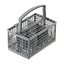 Корзина для столовых приборов — один из обязательных аксессуаров, которыми оснащается любая посудомоечная машина. Она представляет собой сетчатый пластиковый органайзер, в котором устанавливаются в вертикальном положении ложки, ножи и вилки. Корзина, как правило, разделяется на отдельные отсеки, в каждый из которых можно поместить один или несколько предметов. Зачастую сверху она закрывается специальной крышкой, которая также служит для разделения приборов, способствуя более тщательному их мытью.