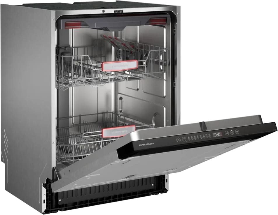 Встраиваемая модель Куперсберг отлично впишется в любой интерьер, главное — правильно выбрать место, чтобы подвести коммуникации. Устанавливается в нишу целиком, полностью закрывается декоративной панелью. Обратите внимание: в комплекте не идет фасад, его необходимо установить самостоятельно. Имеет стандартные размеры, поэтому может не поместиться на очень маленькой кухне. В камеру можно загрузить ограниченное число комплектов: 16 шт. Комплектом считается набор посуды на одного человека, который нужен для полноценного приема пищи: глубокая и плоская тарелки, тарелка для салата, блюдце под чашку, сама чашка, ложка и вилка.