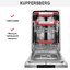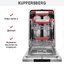 Полностью встраиваемое устройство Купперсберг GIM4578 устанавливается в кухонную тумбу. Узкая посудомойка имеет ширину всего 44,8 см при высоте 81,5 см и глубине 55 см. Размеры ниши для встраивания составляют 45 см в ширину и 82 см в высоту. При установке, подключении к электросети, водопроводу и канализации требуется тщательно следовать инструкции, которая изложена в руководстве пользователя.