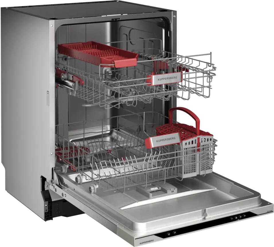 Встраиваемая модель Куперсберг отлично впишется в любой интерьер, главное — правильно выбрать место, чтобы подвести коммуникации. Устанавливается в нишу целиком, полностью закрывается декоративной панелью. Обратите внимание: в комплекте не идет фасад, его необходимо установить самостоятельно. Имеет стандартные размеры, поэтому может не поместиться на очень маленькой кухне. В камеру можно загрузить ограниченное число комплектов: 14 шт. Комплектом считается набор посуды на одного человека, который нужен для полноценного приема пищи: глубокая и плоская тарелки, тарелка для салата, блюдце под чашку, сама чашка, ложка и вилка.