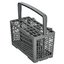 Корзина для столовых приборов достаточно высока, ввиду чего она устанавливается в нижнем коробе, где для нее предусматривается специальное место между разделителями для тарелок. Приборы в корзине могут размещаться как вниз, так и вверх рукоятками — это зависит от количества приборов и требований пользователя. Однако острые предметы — ножи или вилки — необходимо размещать острием вниз для предотвращения травм. Ножи рекомендуется размещать в корзинах с осторожностью, поскольку лезвия из керамики, например, могут затупиться. Чтобы избежать этого, следует использовать фирменные моющие средства и обязательно располагать ножи по отдельности, чтобы они не соприкасались с другими предметами.