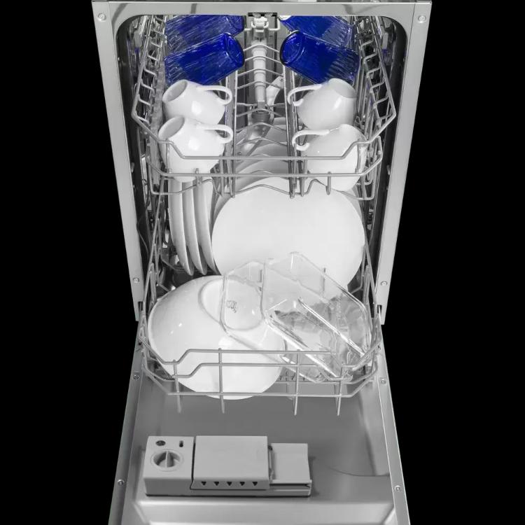 Узкие посудомоечные машины отличает ширина от 44,5 до 45 см при стандартных высоте и глубине и, соответственно, меньшая вместимость, не превышающая 10 комплектов посуды. Обычно это приборы встраиваемого типа, которые легко устанавливаются в узкую мебельную тумбу. Компактные устройства значительно меньше полноразмерных по высоте, а по своей ширине практически от них не отличаются — она составляет от 55 до 60 см. Вместимость подобных небольших машин встраиваемого и отдельно стоящего типа — 4-6 комплектов посуды.