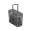 Корзина для столовых приборов — один из обязательных аксессуаров, которыми оснащается любая посудомоечная машина. Она представляет собой сетчатый пластиковый органайзер, в котором устанавливаются в вертикальном положении ложки, ножи и вилки. Корзина, как правило, разделяется на отдельные отсеки, в каждый из которых можно поместить один или несколько предметов. Зачастую сверху она закрывается специальной крышкой, которая также служит для разделения приборов, способствуя более тщательному их мытью.