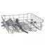 Корзина для столовых приборов достаточно высока, ввиду чего она устанавливается в нижнем коробе, где для нее предусматривается специальное место между разделителями для тарелок. Приборы в корзине могут размещаться как вниз, так и вверх рукоятками — это зависит от количества приборов и требований пользователя. Однако острые предметы — ножи или вилки — необходимо размещать острием вниз для предотвращения травм. Ножи рекомендуется размещать в корзинах с осторожностью, поскольку лезвия из керамики, например, могут затупиться. Чтобы избежать этого, следует использовать фирменные моющие средства и обязательно располагать ножи по отдельности, чтобы они не соприкасались с другими предметами.