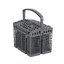 Корзина для столовых приборов — один из обязательных аксессуаров, которыми оснащается любая посудомоечная машина. Она представляет собой сетчатый пластиковый органайзер, в котором устанавливаются в вертикальном положении ложки, ножи и вилки. Корзина, как правило, разделяется на отдельные отсеки, в каждый из которых можно поместить один или несколько предметов. Зачастую сверху она закрывается специальной крышкой, которая также служит для разделения приборов, способствуя более тщательному их мытью.