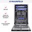 Встраиваемая модель Маунфилд отлично впишется в любой интерьер, главное — правильно выбрать место, чтобы подвести коммуникации. Устанавливается в нишу целиком, полностью закрывается декоративной панелью. Обратите внимание: в комплекте не идет фасад, его необходимо установить самостоятельно. Имеет уменьшенную ширину — благодаря этому поместится даже на очень маленькой кухне. В камеру можно загрузить ограниченное число комплектов: 10 шт. Комплектом считается набор посуды на одного человека, который нужен для полноценного приема пищи: глубокая и плоская тарелки, тарелка для салата, блюдце под чашку, сама чашка, ложка и вилка.