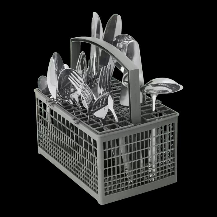 Корзина для столовых приборов — один из обязательных аксессуаров, которыми оснащается любая посудомоечная машина. Она представляет собой сетчатый пластиковый органайзер, в котором устанавливаются в вертикальном положении ложки, ножи и вилки. Корзина, как правило, разделяется на отдельные отсеки, в каждый из которых можно поместить один или несколько предметов. Зачастую сверху она закрывается специальной крышкой, которая также служит для разделения приборов, способствуя более тщательному их мытью.