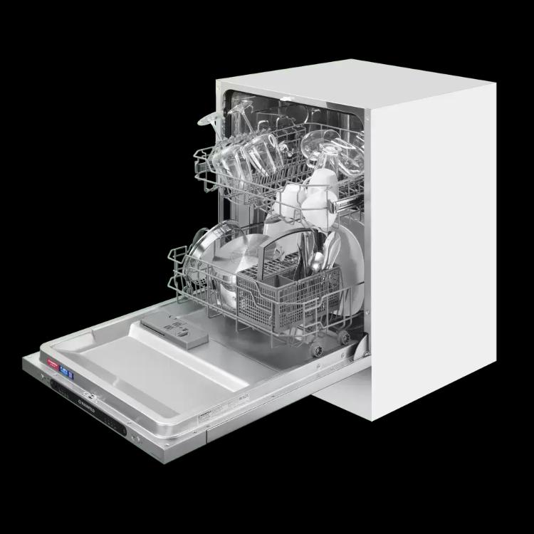 Полноразмерные модели выбирают в больших семьях, а также те, кто много готовит или часто принимает гостей. Их вместимость может составить до 15 комплектов посуды, а габаритные размеры соответствуют размерам стандартной кухонной мебели шириной и глубиной 60 см и высотой 82-85 см. Они выпускаются как во встраиваемом, так и в отдельностоящем варианте: во втором случае для установки понадобится достаточно много места. Как правило, полноразмерные приборы отличаются большим набором стандартных и специальных программ мойки, а также дополнительных опций: в частности, они оснащаются третьей корзиной для мытья столовых приборов.