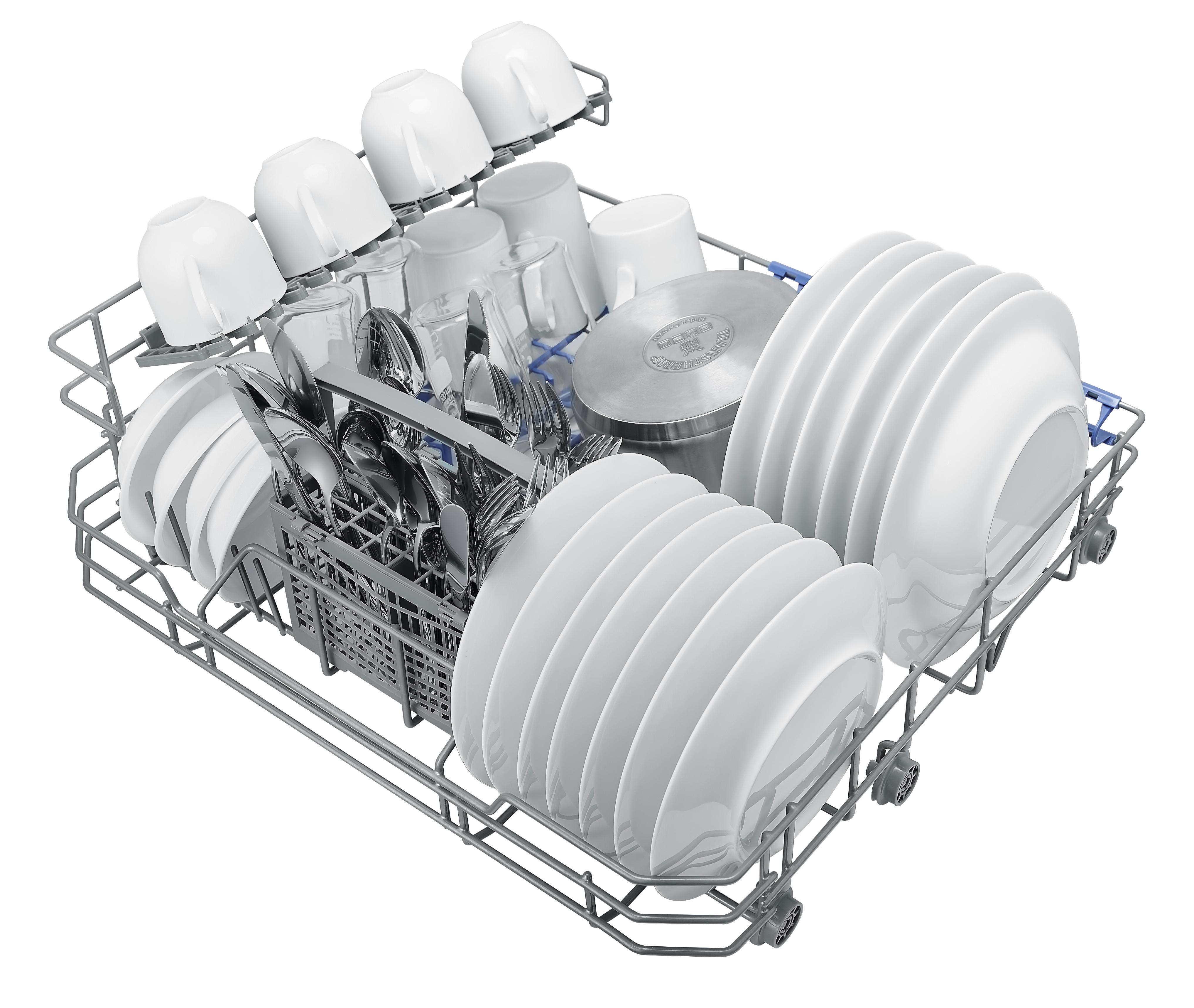 Полноразмерные модели выбирают в больших семьях, а также те, кто много готовит или часто принимает гостей. Их вместимость может составить до 15 комплектов посуды, а габаритные размеры соответствуют размерам стандартной кухонной мебели шириной и глубиной 60 см и высотой 82-85 см. Они выпускаются как во встраиваемом, так и в отдельностоящем варианте: во втором случае для установки понадобится достаточно много места. Как правило, полноразмерные приборы отличаются большим набором стандартных и специальных программ мойки, а также дополнительных опций: в частности, они оснащаются третьей корзиной для мытья столовых приборов.