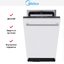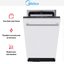 Встраиваемая модель Мидеа отлично впишется в любой интерьер, главное — правильно выбрать место, чтобы подвести коммуникации. Устанавливается в нишу целиком, полностью закрывается декоративной панелью. Обратите внимание: в комплекте не идет фасад, его необходимо установить самостоятельно. Имеет стандартные размеры, поэтому может не поместиться на очень маленькой кухне. В камеру можно загрузить ограниченное число комплектов: 10 шт. Комплектом считается набор посуды на одного человека, который нужен для полноценного приема пищи: глубокая и плоская тарелки, тарелка для салата, блюдце под чашку, сама чашка, ложка и вилка.