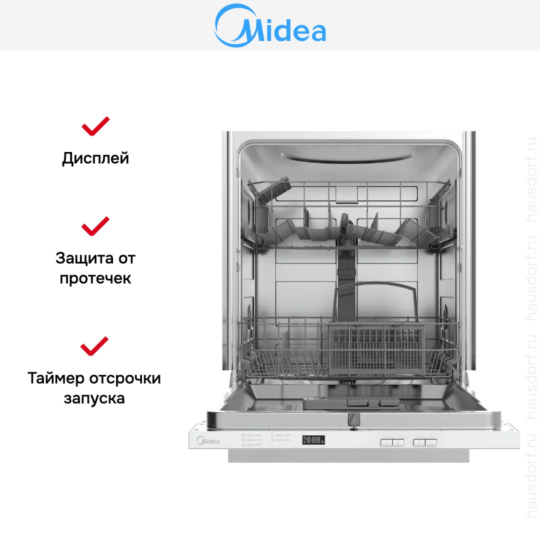 Встраиваемая посудомоечная машина Midea MID60S050 сочетает аккуратный внешний вид и продуманную функциональность для современной кухни. Ее лицевую часть подстраивают под ваш фасад, а серебристая панель управления добавляет аккуратный контраст при открытом модуле. Компактные габариты 81.5×59.8×55 см и полноразмерный формат гарантируют гармоничную интеграцию в кухонный гарнитур без лишних зазоров.
