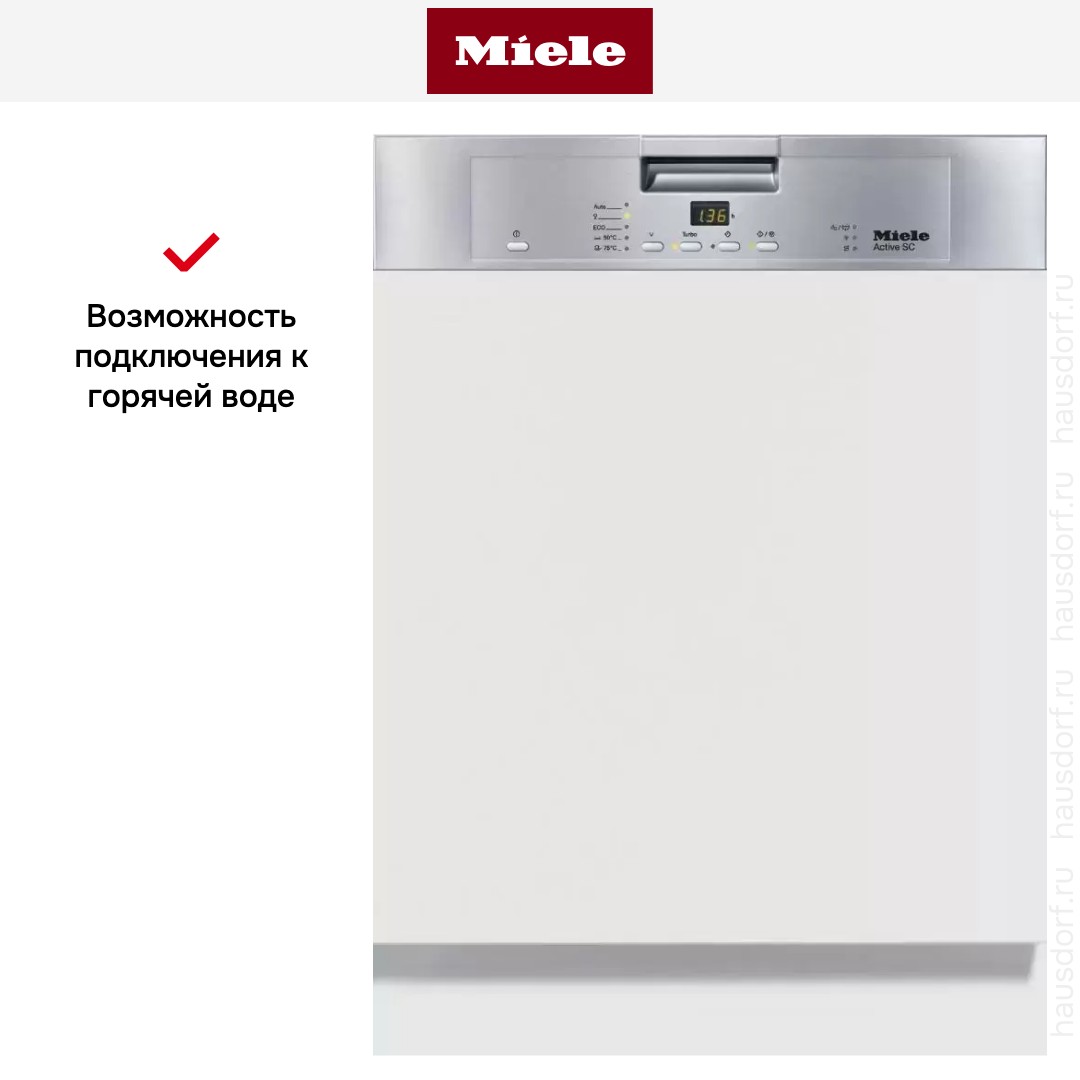 Посудомоечная машина Miele с пятью программами мойки и загрузкой на 14 комплектов посуды. Предусмотрена система мойки свежей водой, сушка Turbothermic. Стильная открытая панель управления с информативным дисплеем.