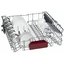 Закрытая панель управления с кнопками и дисплеем позволяет задать программу мойки, а также отсрочку запуска на срок от 1 до 24 часов. Здесь же расположены индикаторы наличия соли и ополаскивателя и датчик загрузки. Об окончании цикла предупреждает индикатор Info Light типа «луч на полу». Для размещения посуды предусмотрены корзины с третьим уровнем размещения VarioDrawer. Система Rackmatic-3 позволяет передвигать их по высоте, фиксируя в трех положениях.