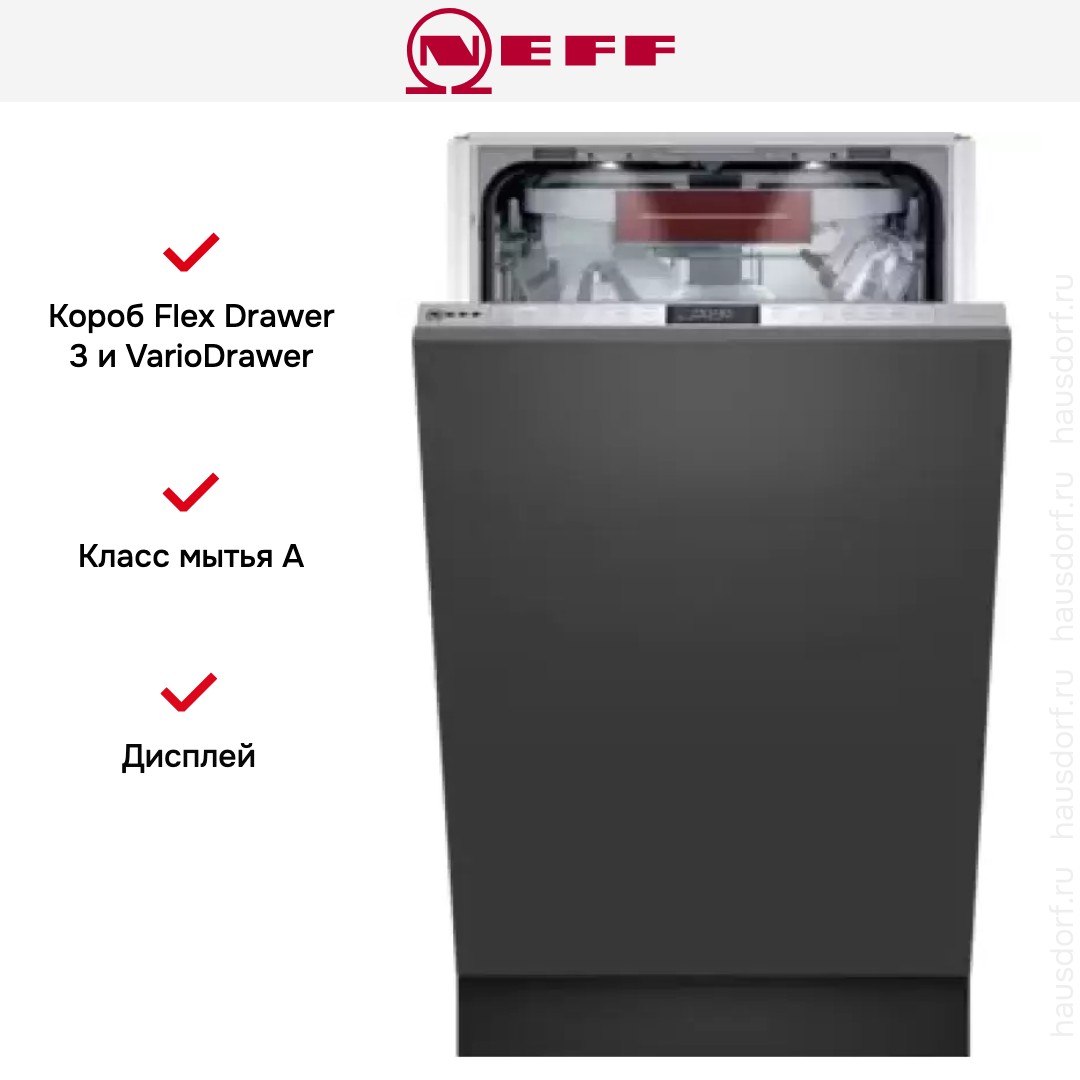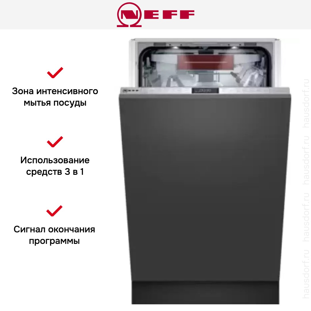 Посудомоечные машины производства известного немецкого бренда Neff разработаны для полной интеграции в интерьер современной кухни. Эти встраиваемые устройства выпускаются в двух вариантах: узкие — шириной 45 см и вместимостью 8-10 комплектов посуды — и полноразмерные — шириной 60 см и вместимостью до 14 комплектов посуды. Все модели предназначены для установки на них декоративного мебельного фасада, полностью соответствующего выбранному стилю.