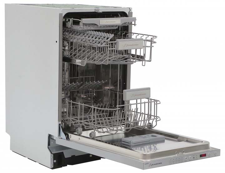 Полноразмерные модели выбирают в больших семьях, а также те, кто много готовит или часто принимает гостей. Их вместимость может составить до 15 комплектов посуды, а габаритные размеры соответствуют размерам стандартной кухонной мебели шириной и глубиной 60 см и высотой 82-85 см. Они выпускаются как во встраиваемом, так и в отдельностоящем варианте: во втором случае для установки понадобится достаточно много места. Как правило, полноразмерные приборы отличаются большим набором стандартных и специальных программ мойки, а также дополнительных опций: в частности, они оснащаются третьей корзиной для мытья столовых приборов.
