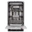 - Полная встройка и ширина 44.8 см: скрывается за фасадом и экономит место в кухне.
