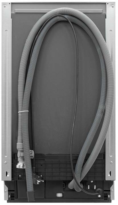 Посудомойка незаметна за счет полного встраивания: эта узкая модель с мебельной дверцей, поэтому цвет — под навес вашего фасада. Лицевая часть без лишних деталей сохраняет единый стиль кухни, панель управления закрытая, черного цвета, есть цифровой дисплей. Корпус с габаритами 81.5×44.8×55.8 см рассчитан на установку в нишу 81.5—87.5×45×58 см — интеграция проходит без лишних подгонок.