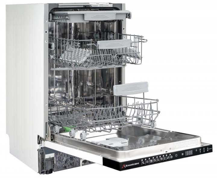 Встраиваемая модель Шауб Лоренц отлично впишется в любой интерьер, главное — правильно выбрать место, чтобы подвести коммуникации. Устанавливается в нишу целиком, полностью закрывается декоративной панелью. Обратите внимание: в комплекте не идет фасад, его необходимо установить самостоятельно. Имеет уменьшенную ширину — благодаря этому поместится даже на очень маленькой кухне. В камеру можно загрузить ограниченное число комплектов: 10 шт. Комплектом считается набор посуды на одного человека, который нужен для полноценного приема пищи: глубокая и плоская тарелки, тарелка для салата, блюдце под чашку, сама чашка, ложка и вилка.