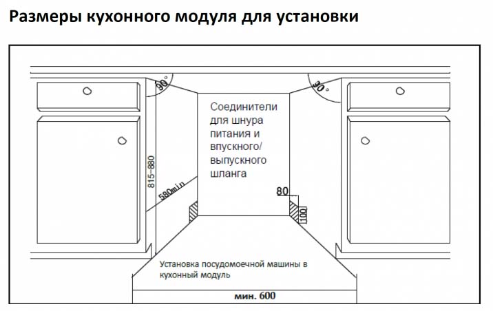 Стандартное значение глубины посудомойки у большинства производителей составляет 55 см. Для правильной установки к этой величине необходимо прибавить около 10 см на размещение шлангов и кабеля, а у встраиваемых моделей еще 5 см составит толщина декоративного мебельного фасада. Таким образом, глубина ниши или тумбы для установки посудомойки должна будет составить не менее 70 см. Для случаев, когда размеры кухонного гарнитура или метраж помещения не позволяют установить посудомойку стандартного размера, можно заменить ее устройством глубиной 54 см или ниже.