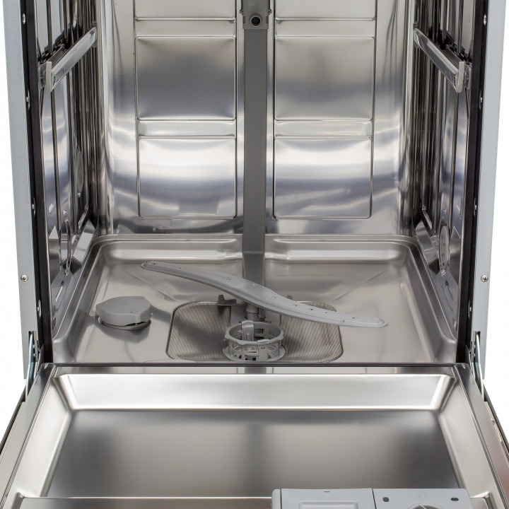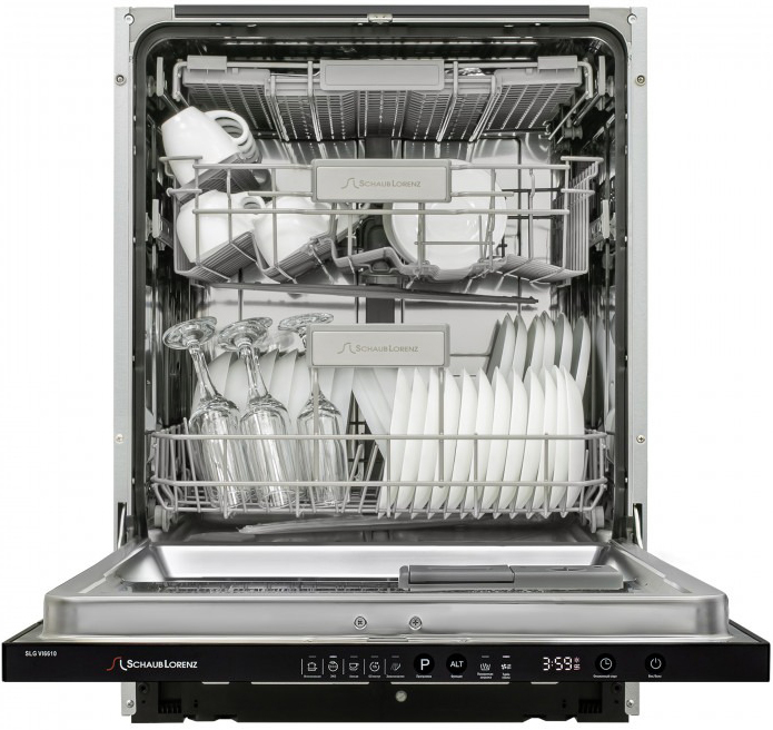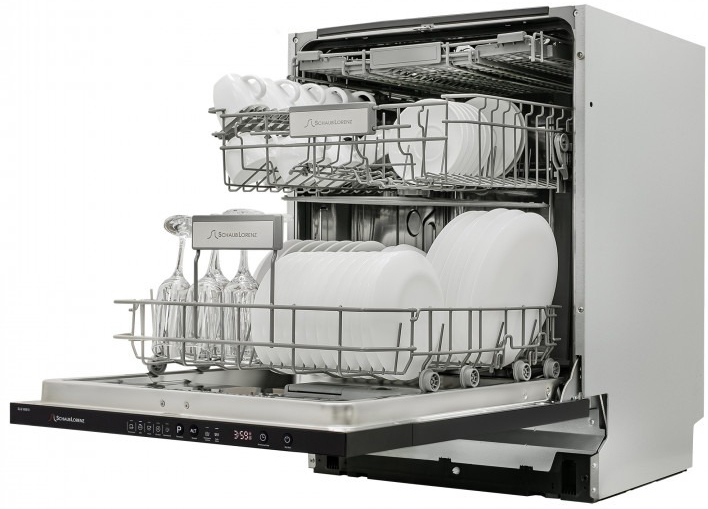 Встраиваемая модель Шауб Лоренц отлично впишется в любой интерьер, главное — правильно выбрать место, чтобы подвести коммуникации. Устанавливается в нишу целиком, полностью закрывается декоративной панелью. Обратите внимание: в комплекте не идет фасад, его необходимо установить самостоятельно. Имеет стандартные размеры, поэтому может не поместиться на очень маленькой кухне. В камеру можно загрузить ограниченное число комплектов: 14 шт. Комплектом считается набор посуды на одного человека, который нужен для полноценного приема пищи: глубокая и плоская тарелки, тарелка для салата, блюдце под чашку, сама чашка, ложка и вилка.