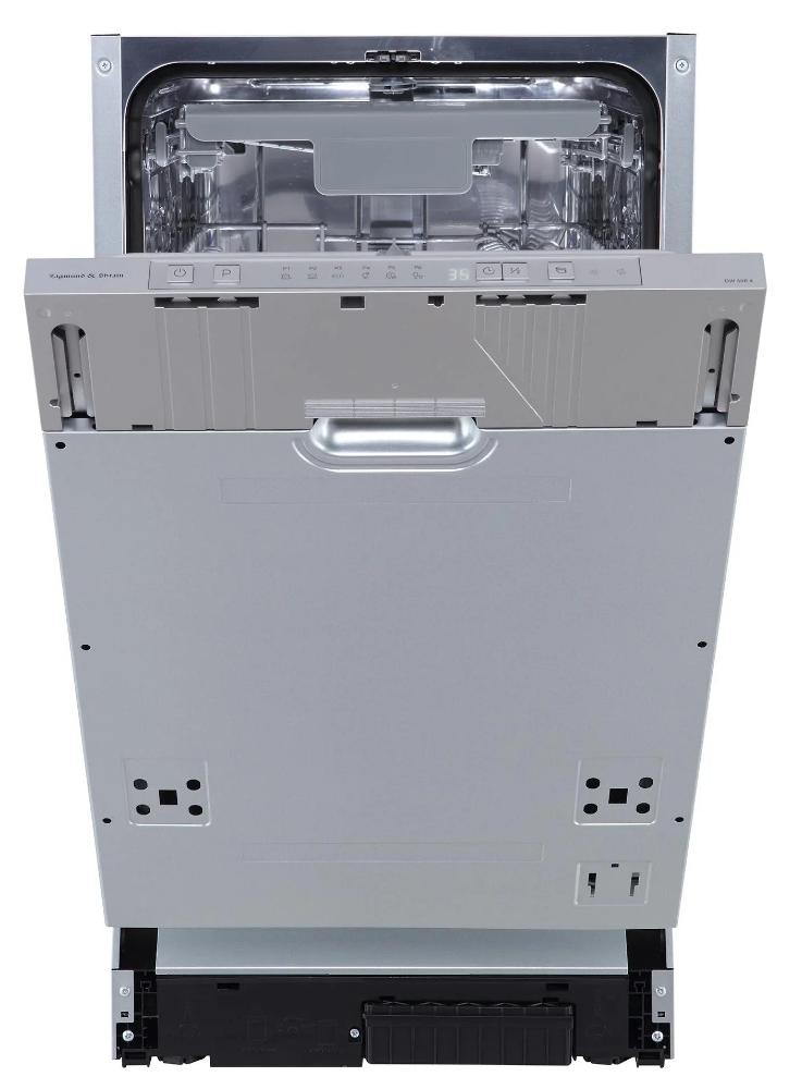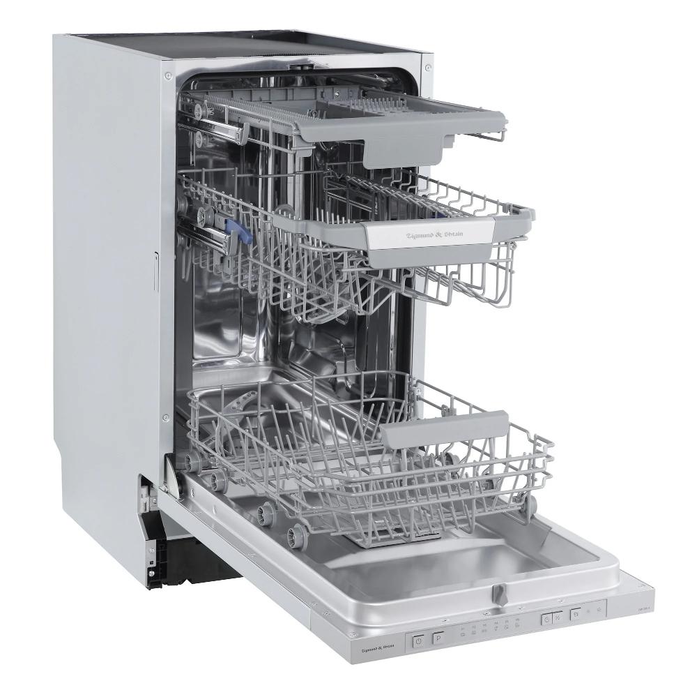 Встраиваемая модель Зигмунд Штайн отлично впишется в любой интерьер, главное — правильно выбрать место, чтобы подвести коммуникации. Устанавливается в нишу целиком, полностью закрывается декоративной панелью. Обратите внимание: в комплекте не идет фасад, его необходимо установить самостоятельно. Имеет уменьшенную ширину — благодаря этому поместится даже на очень маленькой кухне. В камеру можно загрузить ограниченное число комплектов: 10 шт. Комплектом считается набор посуды на одного человека, который нужен для полноценного приема пищи: глубокая и плоская тарелки, тарелка для салата, блюдце под чашку, сама чашка, ложка и вилка.